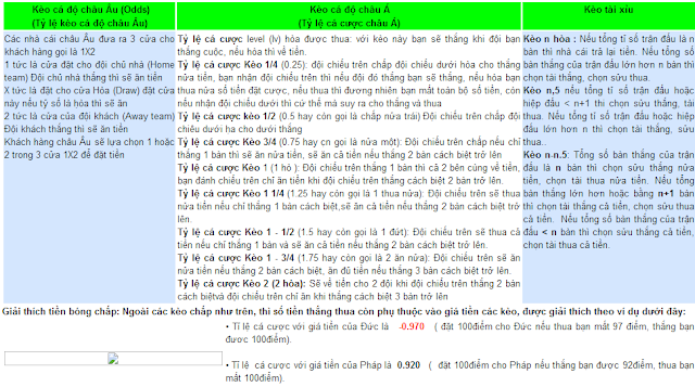 Tỷ lệ kèo bóng đá (Cung cấp bởi bongda.com.vn)Click vào ảnh để xem full ảnh hướng dẫn cá độ kèo cá độ châu Âu, kèo cá độ châu Á, kèo cá độ tài xỉu, hướng dẫn cá cược cho người cá độ mới vào nghề.